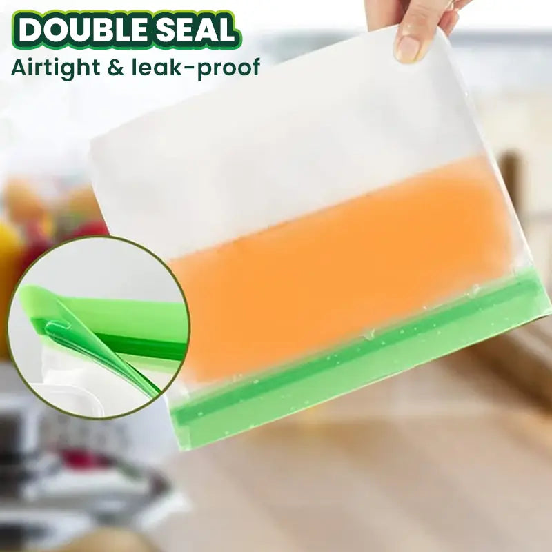 Meet FreshLock, the reusable BPA-free silicone storage bag that keep your food fresh and fridge organized, all without the plastic waste.